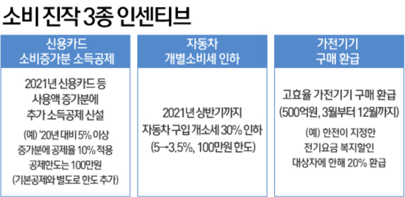 정부는 올해 소비진작을 위해 크게 3가지 지원책을 예고한 상태라고 합니다.