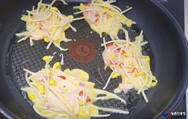 콩나물은 집에서 기르기에 도전해봄직 하고 영양이나 효능 면에서도 뛰어나 콩나물을 활용한 요리도 다양합니다. 콩나물을 활용한 별미, 콩나물베이컨고추전 만드는 방법을 소개해 드리겠습니다.