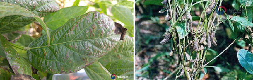 심하면 줄기나 꼬투리에 발병해 콩알이 작아지고, 색이 변해 썩거나 아예 콩알을 맺지 못해 수확량이 떨어진다고 합니다.
