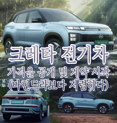 오늘은 현대차 크레타 전기차 가격을 공개하고  계약 시작(마힌드라보다 저렴하다)한다고 하여 소식을 전해드리겠습니다.
