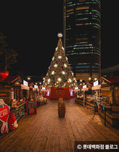 잠실에 있는 롯데월드몰 잔디광장에서는 크리스마스 마켓이 한창이라고 합니다.