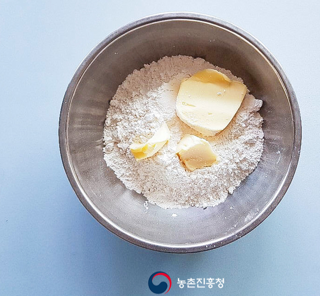 타르트 반죽 재료 : 박력분 300g, 버터 150g, 소금 3~4꼬집, 찬물 4TS
