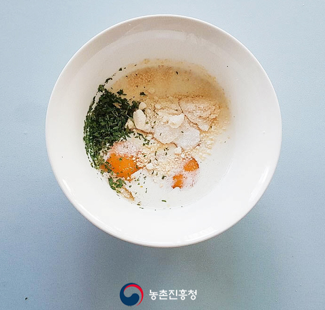 아파레유 재료 : 계란 2개, 소금 및 설탕 3꼬집, 우유 500ml, 생크림 50ml, 파마산 치즈가루 2TS