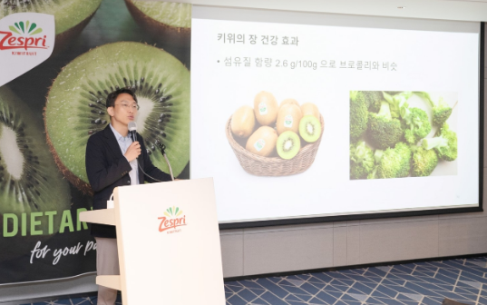 '저속노화' 열풍의 주역인 정희원 서울아산병원 노년내과 교수가 밝힌 건강 식단 비결 중 하나입니다. 그는 지난 5월 28일 서울 송파구 소피텔 앰버서더 서울에서 열린 제스프리 기자 간담회에서 영양소가 높은 과일로 키위를 꼽으면, "하루에 두 개 정도 먹으면 종합비타민을 따로 먹을 필요가 없다"라고 했습니다. 이 자리는 뉴질랜드 키위 브랜드 제스프리가 '영양소 밀도 중심의 건강 식단 연구 결과'를 발표하기 위해 마련했습니다.