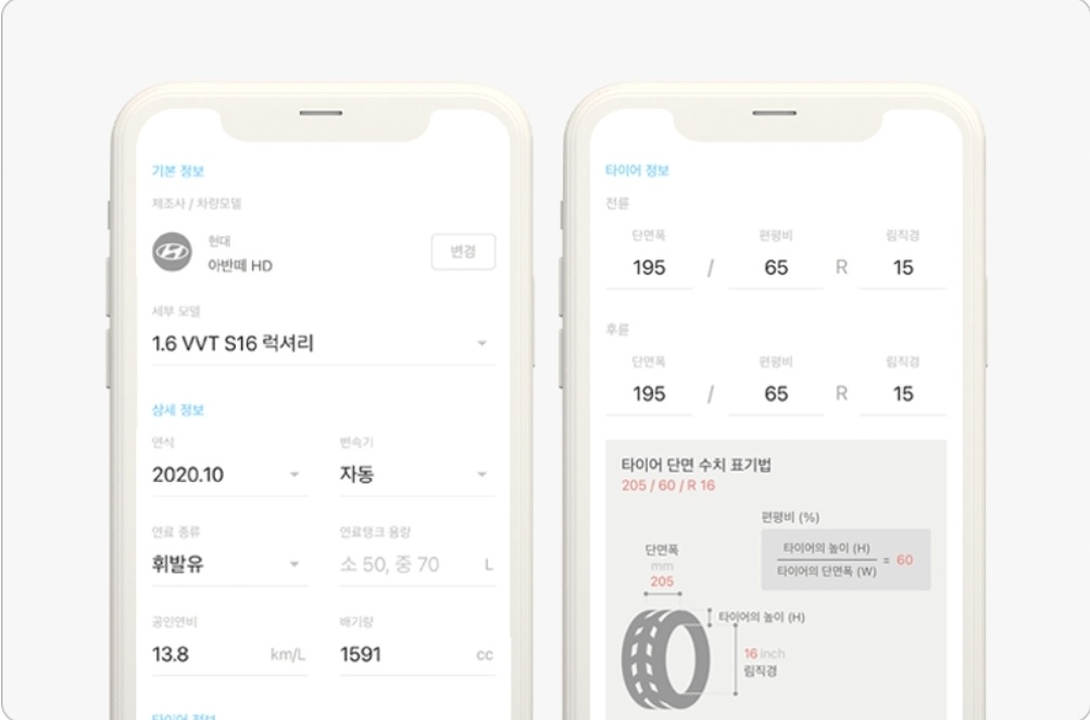 혹은 내 차 차이어 옆면을 보면 타이어 사이즈를 아주 쉽게 볼 수 있습니다.