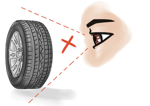 육안 검사는 차량 출발 전 가장 쉽게 할 수 있는 공기압 점검으로 안전운전에 필수적인 요소입니다. 나사못이나 철사가 타이어에 박혀 있는 경우 오랜 시간 동안 천천히 공기압이 감소해 알아차리는 것이 쉽지 않은 반면 고속주행 시 상당히 위험한 요소로 작용합니다.