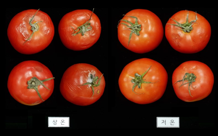 실험 결과, 토마토는 공기 조성과 적정 습도를 유지할 수 있는 XF필름으로 포장해 저온 4℃ 보관한 시험구(0.86)가 아무것도 처리하지 않은 채 저온에 둔 시험구(2.02)보다 저온 장해 발생이 절반가량 적었다고 합니다.