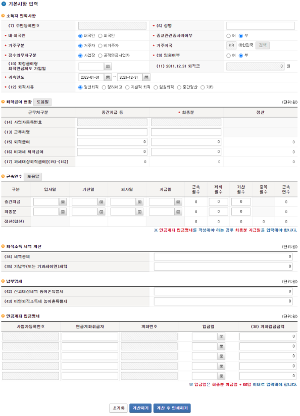 | 홈택스 → 모의계산 →퇴직소득 세액계산 |