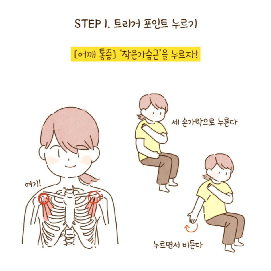 어깨통증은 작은가슴근을 누르면 될것 같습니다.