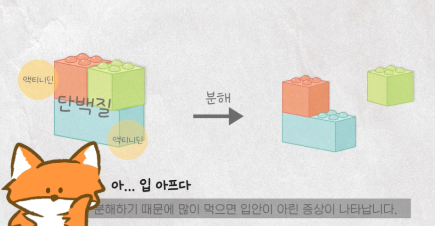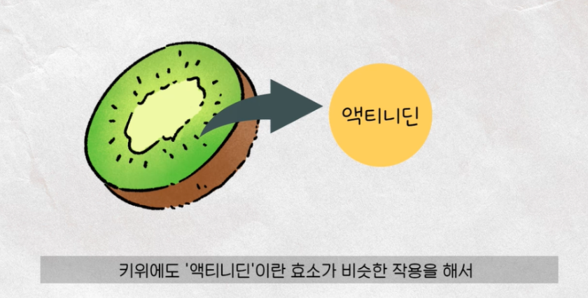 참고로 키위에는 '액티니딘'이란 효소가 있습니다. 위에서 설명드린 파인애플의 효소와 비슷한 작용을 해 단백질을 분해하기 때문에 많이 먹으면 입안이 아린 증상이 나타난다고 합니다.