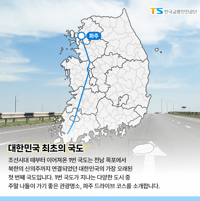 조선시대 때부터 이어져온 1번 국도는 전남 목포에서 북한의 신의주까지 연결되었던 대한민국의 가장 오래된 첫 번째 국도입니다. 1번 국도가 지나는 다양한 도시 중 나들이 가기 좋은 관광명소, 파주 드라이브 코스를 소개해 드리겠습니다.