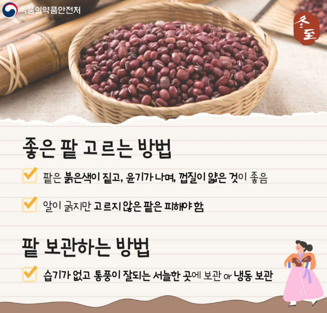 이렇게 영양이 풍부한 좋은 팥을 고르려면, 붉은색이 짙고 윤기가 나며 껍질이 얇은 것을 고르는 게 좋고, 알이 굵지만 고르지 않은 팥은 피해야 한다고 합니다.
