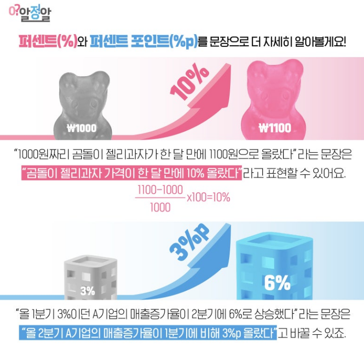 퍼센트(%)와 퍼센트 포인트(%p)를 문장으로 더 자세히 알아보겠습니다.