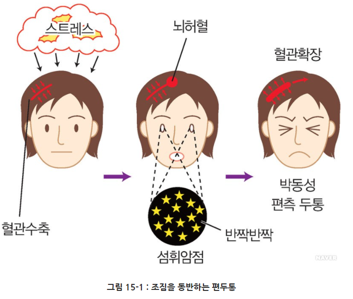 환자들은 머리가 지끈거린다건, 맥박이 뛰듯이 쿵쿵거리게 아프다고 한다고 합니다.
