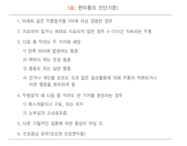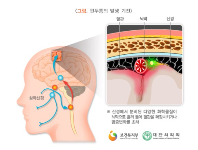 환자들은 머리가 지끈거린다건, 맥박이 뛰듯이 쿵쿵거리게 아프다고 한다고 합니다.