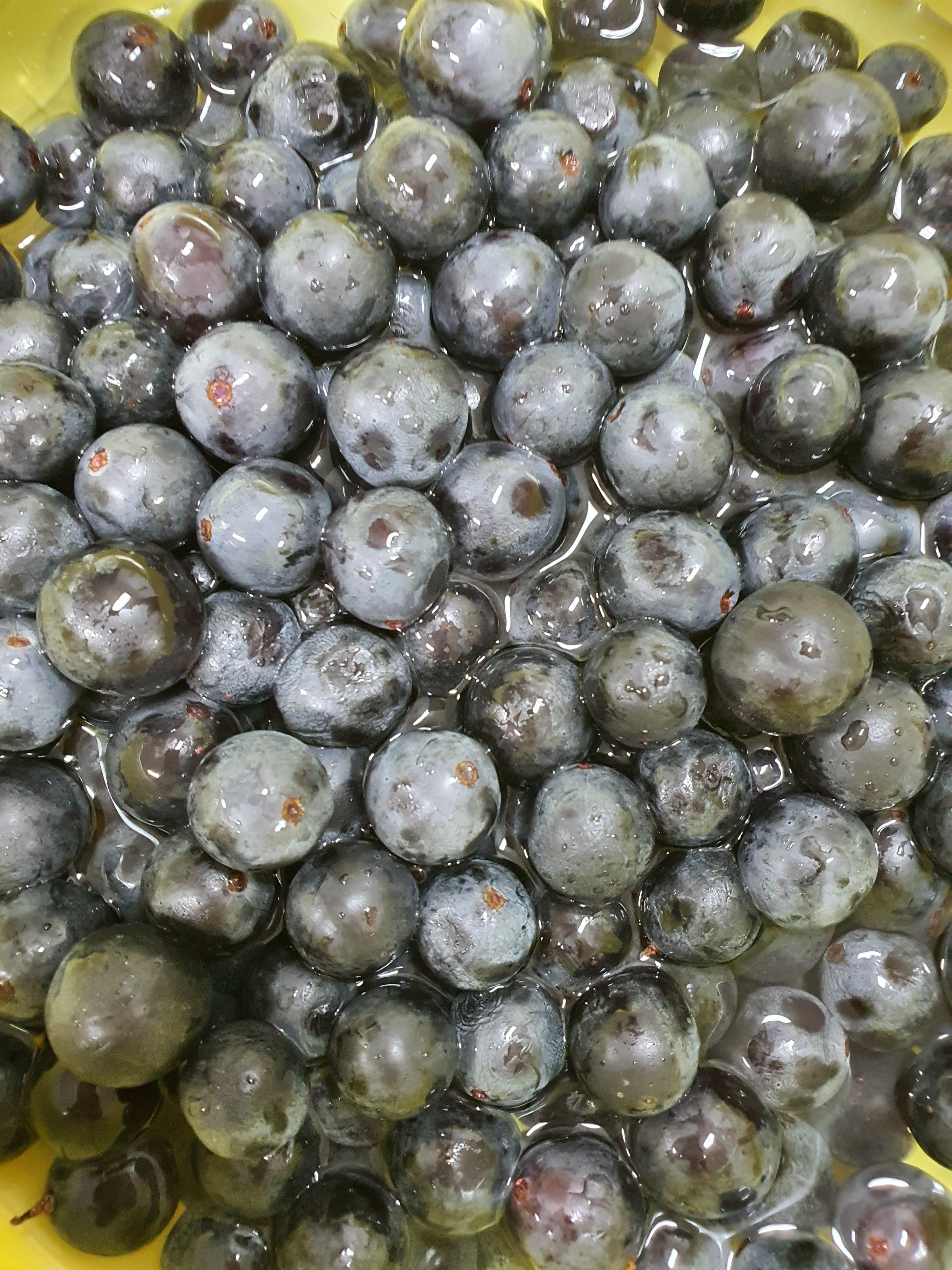 1. 포도를 알알이 모두 떼어 물로 씻어줍니다.