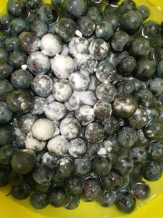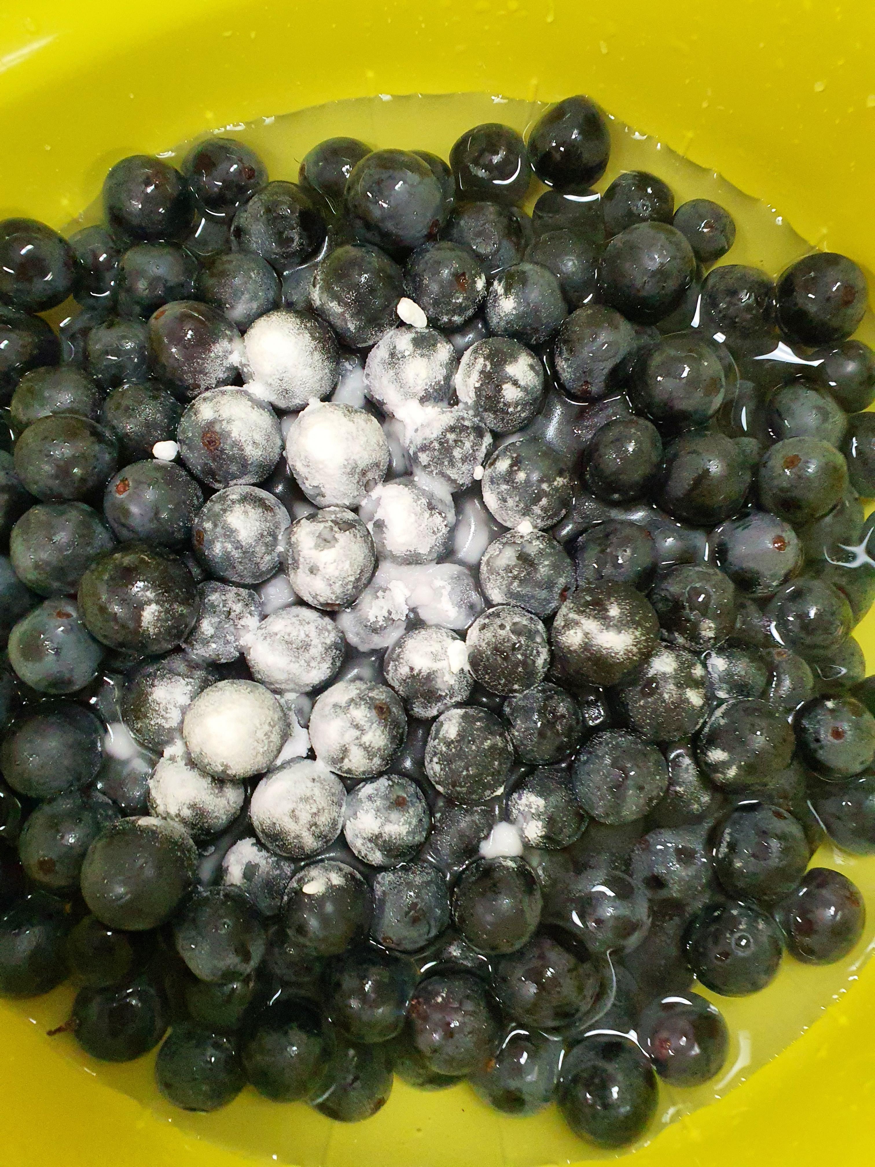 2. 씻은 포도는 베이킹 소다 3 숟가락 정도를 넣도 다시 물에 30분 정도 담궈둡니다.