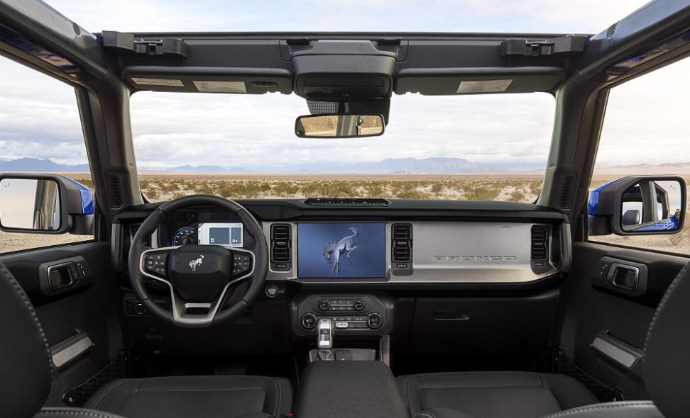 브롱코의 최저지상고는 210mm, 도하 수심은 최대 850mm까지 가능하고, 탈착식 루프가 2도어와 4도어 모델에 모두 제공되며, 프레임리스 도어는 완전히 분리한 상태로 주행이 가능하다고 합니다. 인포테인먼트 모니터는 8인치가 기본으로 옵션으로 12인치 모니터를 선택할 수 있다고 합니다.