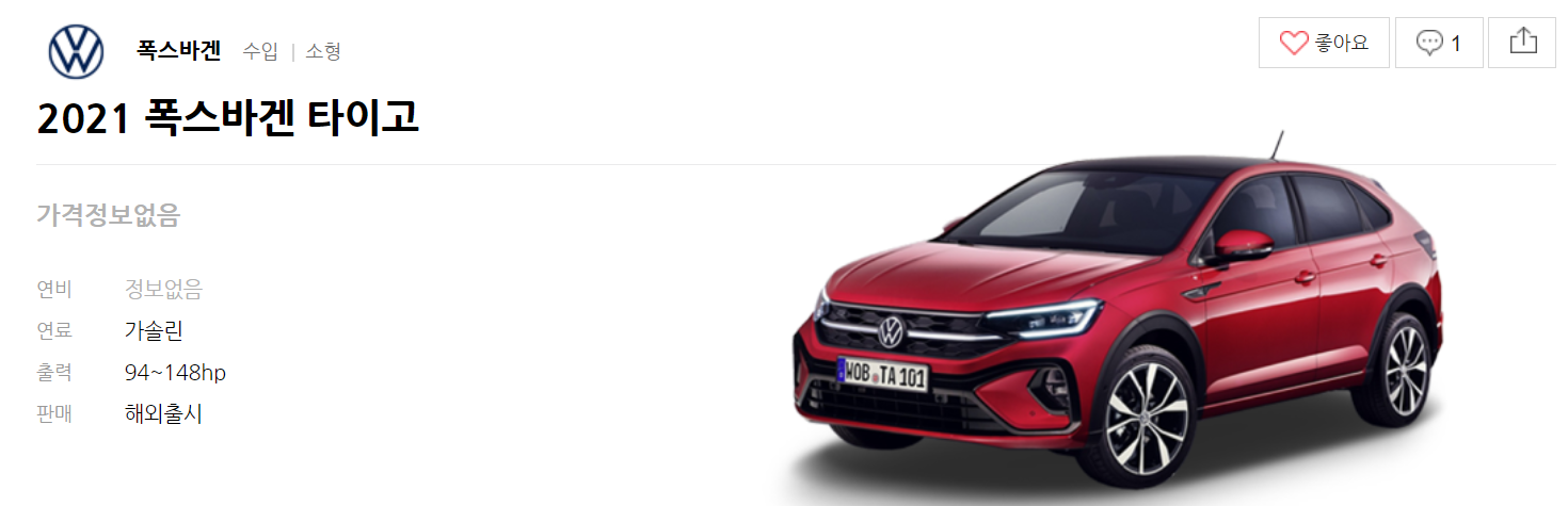 폭스바겐은 타이고를 7월 28일 공개했다고 합니다.