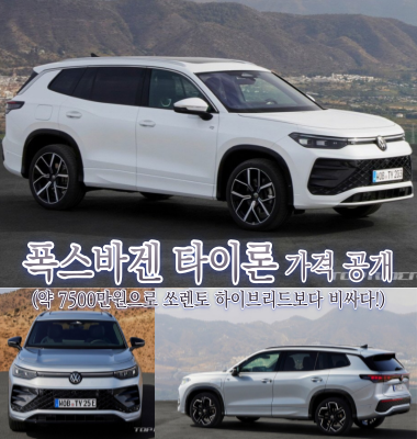 오늘은 폭스바겐 타이론 유럽 가격 공개(약 7500만 원으로 쏘렌토 하이브리드보다 비싸다!) 소식을 전해드리겠습니다.