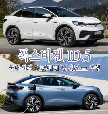 폭스바겐 ID.5 국내 가격 6099만 원 및 434km 주행