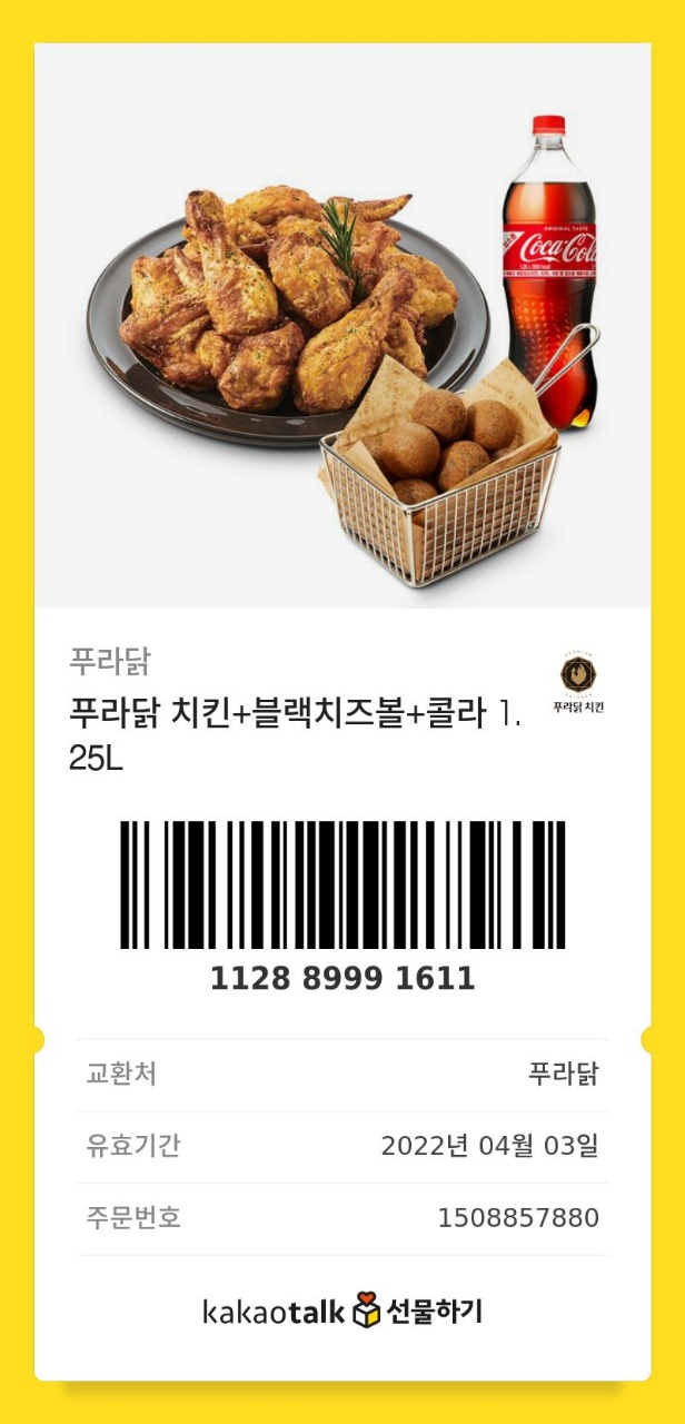 푸라닭 치킨 카카오톡 선물로 배달시키기