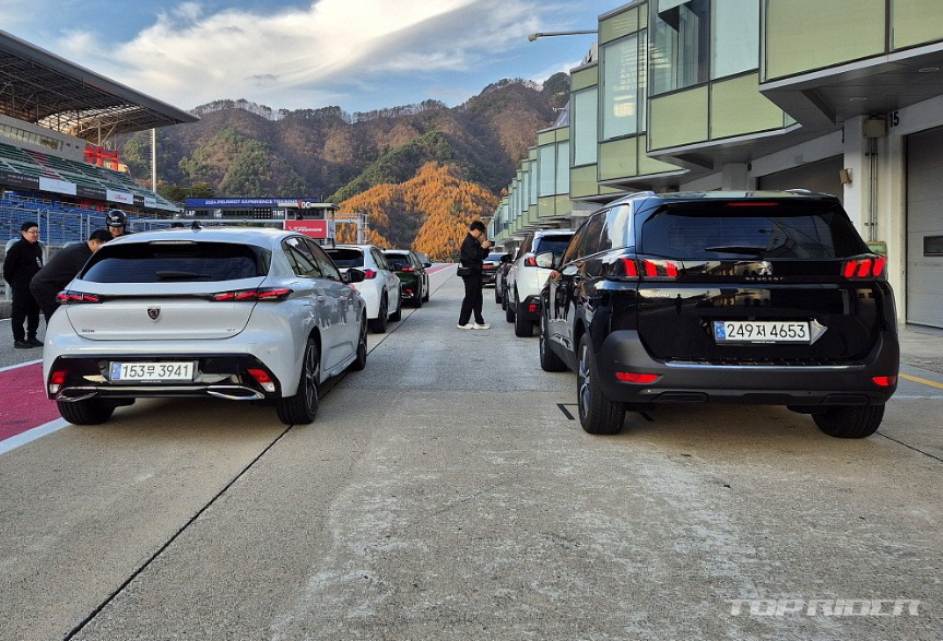 본격적인 서킷 주행에서는 푸조 408을 비롯한 푸조 3008 SUV와 5008 SUV가 함께 했습니다. 일상주행에서 꽤나 부드러운 승차감을 전하는 SUV 라인업이기에 큰 기대는 없었습니다.하지만 실제 주행에서는 작고 빠른 푸조 308을 타이트하게 추종할 정도로 코너링 성능이 좋았습니다.