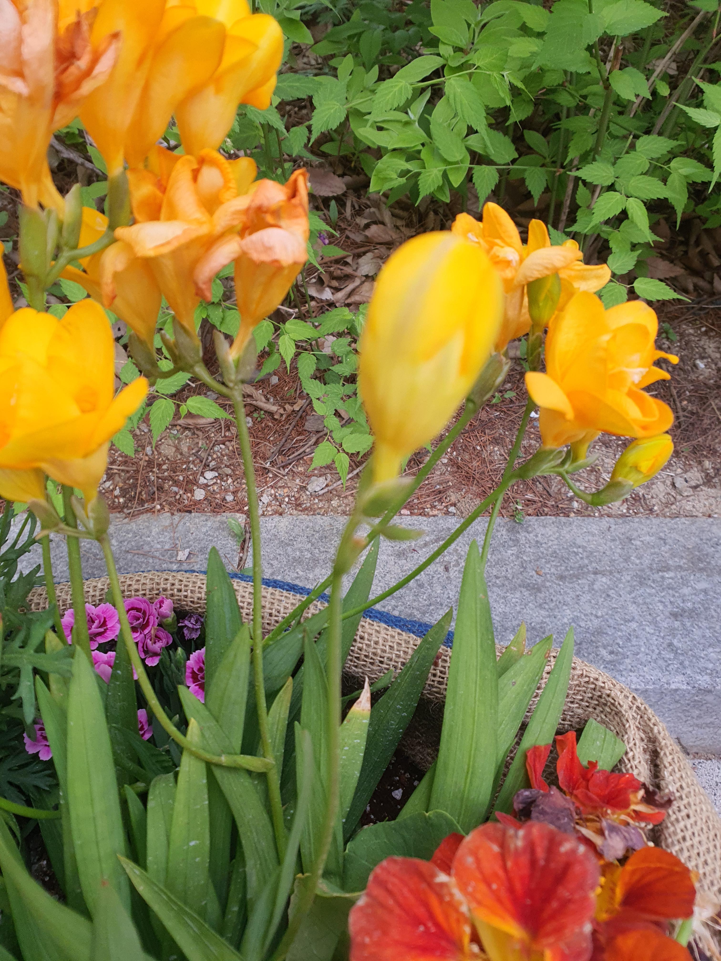 프리지아는 토양에 대한 적응성이 넓으나 보수력이 있고 배수가 잘 되는 토양을 좋아한다고 합니다.