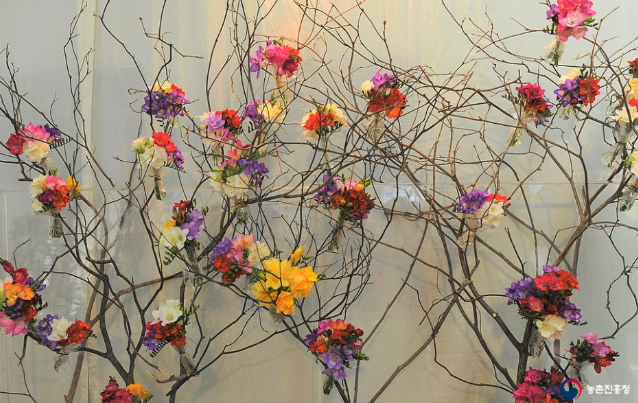 농촌진흥청은 노란색 말고도 다양한 색의 프리지어를 꽃다발, 장식, 꽃꽂이에 활용할 수 있도록 개발했습니다.