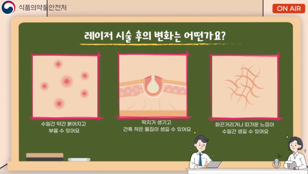 단, 참기 힘든 통증이나 과도한 물집, 심한 붉음증이나 붓기, 피부 손상 등 레이저 시술 부위에 예상치 못한 문제가 생기면 임의로 처치하지 말고 치료받은 병·의원에 즉시 문의해야 합니다.