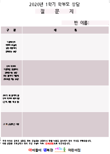 상담 시 짧은 시간에 효율적으로 상담을 하기 위해 평소 아이에 대해 궁금했던