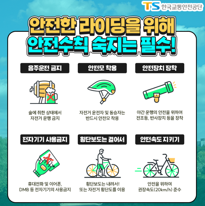 자전거 운전자 및 동승자는 반드시 안전모 착용
