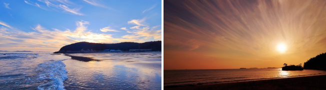 원산도 해수욕장은 서해 일출, 일몰 명소로도 유명합니다. 연말연시면 일부러 찾는 관광객들이 늘 정도입니다. 계절에 따라 해가 지는 방향이 약간씩 다르지만, 서해 바다로 지는 서해 일몰은 어느 계절에 보아도 장관입니다.