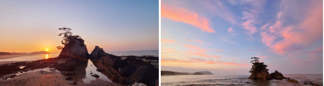 주변에 바위섬이 있어서 근사하고 운치 있는 사진 배경을 만들어줍니다. 해돋이 일몰 때 이 바위를 중심으로 아름다운 자연의 신비로움을 촬영할 수 있습니다.