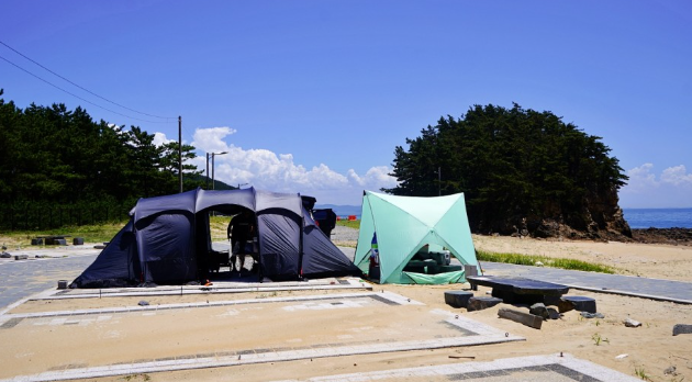 또 다른 한쪽에도 캠핑장이 숲속과 바닷가에 운영되고 있는데, 가장 인기 있는 곳은 바로 바다가 바로 앞에 보이는 바닷가 야영장입니다. 텐트 안에서 서녘으로 지는 해넘이를 즐길 수 있다는 건 최고의 낭만이 아닐까 싶습니다.