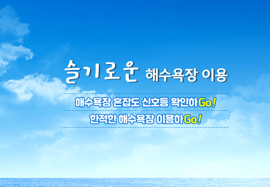 복잡하고 불편한 해수욕장은 NO! 올해는 여유롭고 안전하게! 안전하고 쾌적한 해수욕장을 위해 한적한 해수욕장과 해수욕장 혼잡도 신호등을 운영합니다.