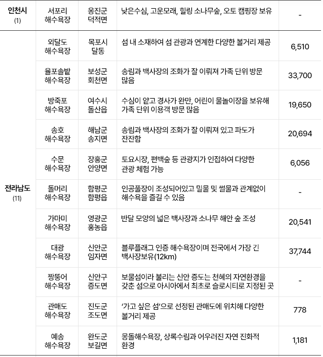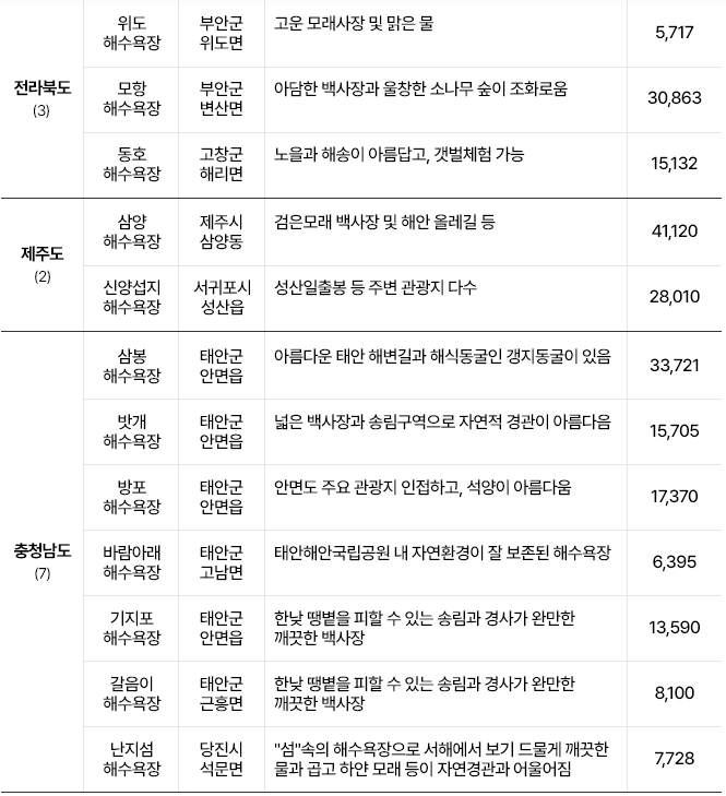 주변 자연환경이 뛰어나고 편의시설이 잘 갖춰진 연간 이용객 5만 명 미만의 해수욕장 50개 선정