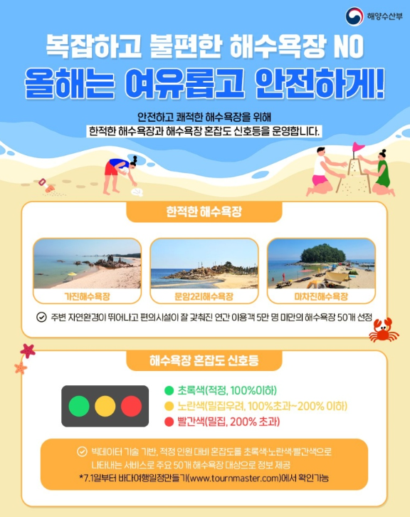 한적한 해수욕장 50곳 어디? 혼잡도 확인하는 신호등이 있다?