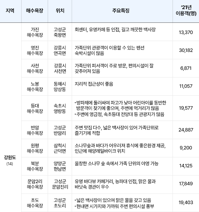 <'22년도 해수부 선정 한적한 해수욕장 50선>