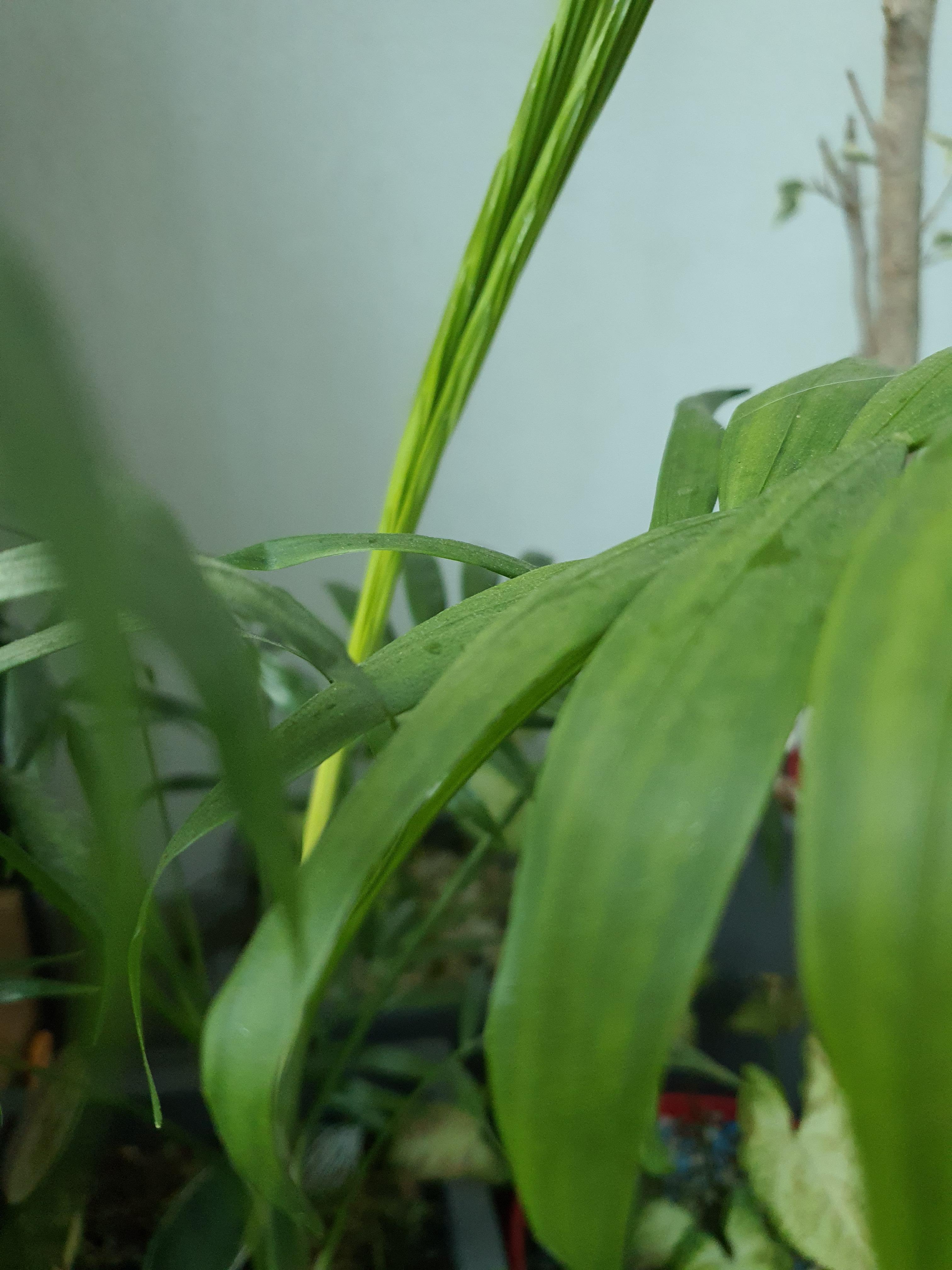테이블야자 역시 생육에 적합한 온도는 18~24℃ 이며 겨울에는 10℃ 이상을 유지해 주어야 월동할 수 있다고 합니다. 하지만, 보이시나요? 저렇게 큰 새 잎이 나고 있습니다. 이번 월동 정말 전혀 상관없다는 듯이 말입니다.