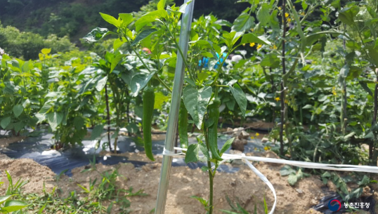 고추는 병충해도 많고 장마철에 취약해 키우기 쉬운 작물은 아닙니다. 그럼에도 2~3그루 심어두면 여름내 풋고추를 먹을 수 있어 놓치지 않고 심는 작물입니다. 5월 초 모종을 구입해 아주심기 하는데, 40cm 간격으로 심고 충분히 물을 뿌려줍니다.