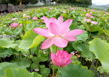 함안공설운동장 옆에 조성한 함안연꽃테마파크에 가면 700년 동안 잠들었던 연꽃 씨앗을 되살려 꽃 피운 아라홍련 군락지를 볼 수 있습니다. 지난 2009년 성산산성에서 발굴된 이 연꽃 씨앗은 고려시대의 것으로 추정합니다.
