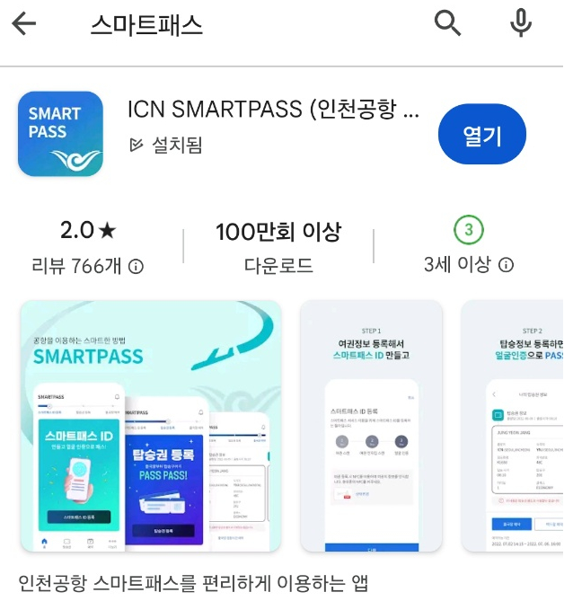 플레이스토어나 앱스토어에서 '스마트패스'를 검색하면 위의 앱을 볼 수 있습니다. 앱을 깔고 얼굴 정보, 여권 정보, 탑승권을 등록해야 합니다.