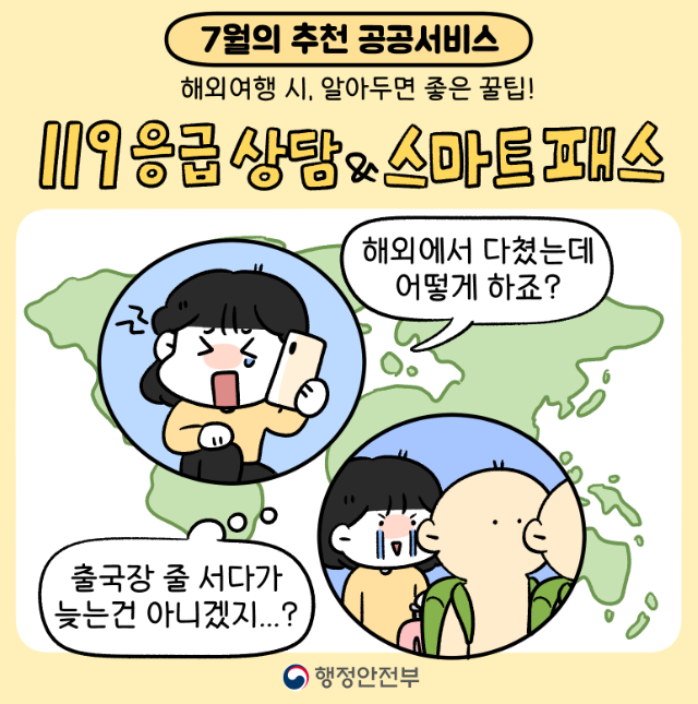 오늘은 해외여행 시 알아두면 좋은 꿀팁(119 응급 의료상담 & 스마트패스)을 소개해 드리겠습니다.