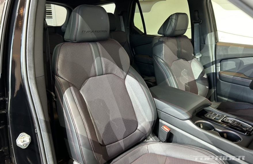 블랙 스티어링 가니쉬, 블랙 헤드레스트가 제공됩니다. 1열 헤드레스트와 1열 플로어 매트에는 블랙 에디션 로고가 새겨졌습니다. 블랙 컬러 천공 가죽 시트에는 레드 엑센트와 스티치가 적용돼 일반 모델과 차별화됐습니다. 스티어링 휠에도 전용 레드 콘트라스트 스티치가 추가됐다고 합니다.