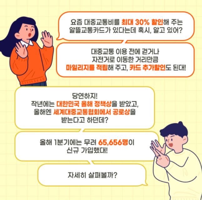 요즘 대중교통비를 최대 30% 할인해주는 알뜰교통카드가 있는데, 알고 계신가요?