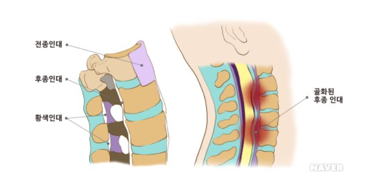 척추의 안정성을 유지하고 목과 과하게 굴고 되는 것을 막아주는 '후종인대'가 비정상적으로 단단해지는 질환을 후종인대골화증이라고 한다고 합니다.