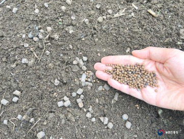2. 겨울이 오기 전, 잎이 5~6장 나올 수 있도록 2.5~3cm 깊이로 고르게 줄뿌림해 준 다음, 물을 충분히 줍니다.
