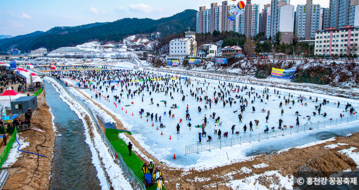 위치 : 홍천강변 일원기간 : 2월 1일(토)까지 체험 행사 : 얼음낚시터, 가족실내낚시터, 맨손송어잡기부대 행사 : 행운권추첨, 꽁꽁DJ, 꽝조사 이벤트 등※ 입장권 구매 시 홍천사랑상품권, 농산물상품권 5000원 제공