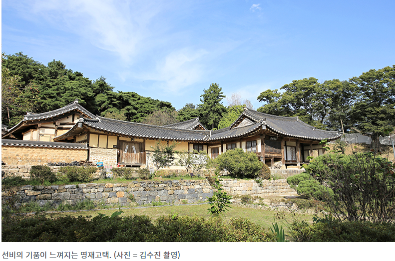 논산 명재고택(국가민속문화재)은 평생 벼슬을 사양하고 학문 연구와 후대 교육에 전념한 조선 대학자 명재 윤증의 집입니다. 고택은 안채와 광채(곳간채), 사랑채, 사당으로 구성됩니다. 보존 상태가 양호한 조선 양반 주택의 가치에 실용성과 과학적 원리가 돋보이는 한옥으로 꼽힙니다. 미닫이와 여닫이 기능을 합친 안고지기를 활용한 사랑채, 일조량과 바람의 이동을 고려한 안채와 광채 배치 등 선조의 지혜가 돋보입니다.